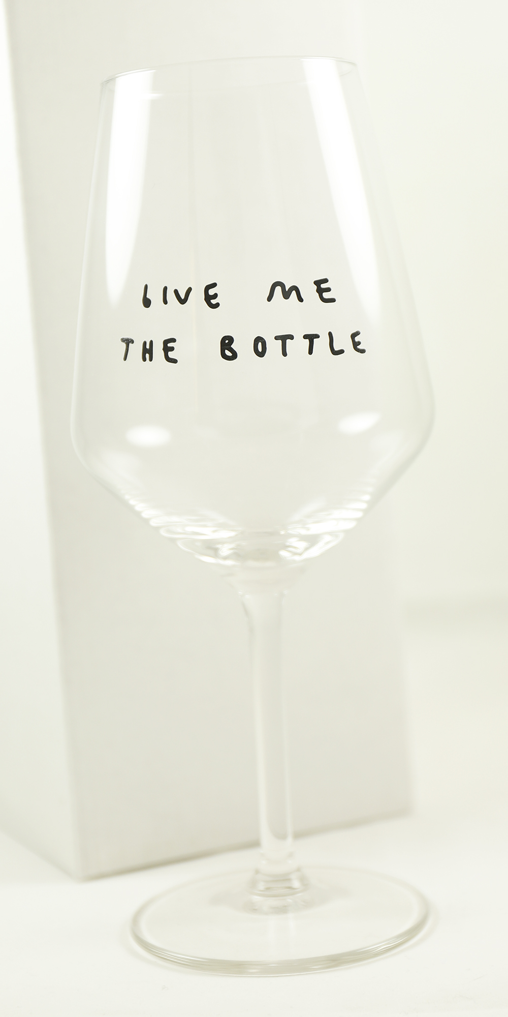 Zum passenden Wein das passende Glas mit ausdrucksstarkem Zitat